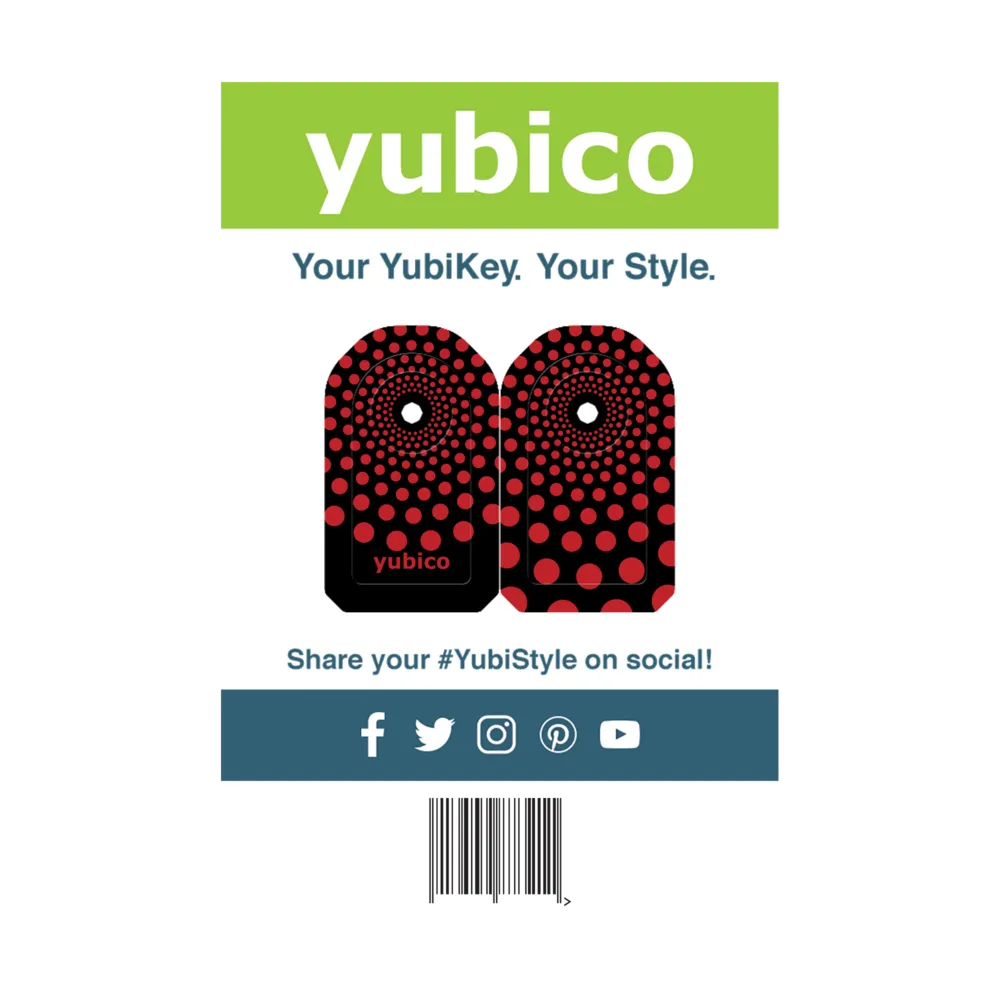 YubiStyle covers are printed on high-quality 3M film and covered with a durable, UV-protective, satin-gloss laminate. Our precision die cut YubiStyle covers are custom made to perfectly fit your YubiKey and style! They will protect your YubiKey against scrapes and scratches.