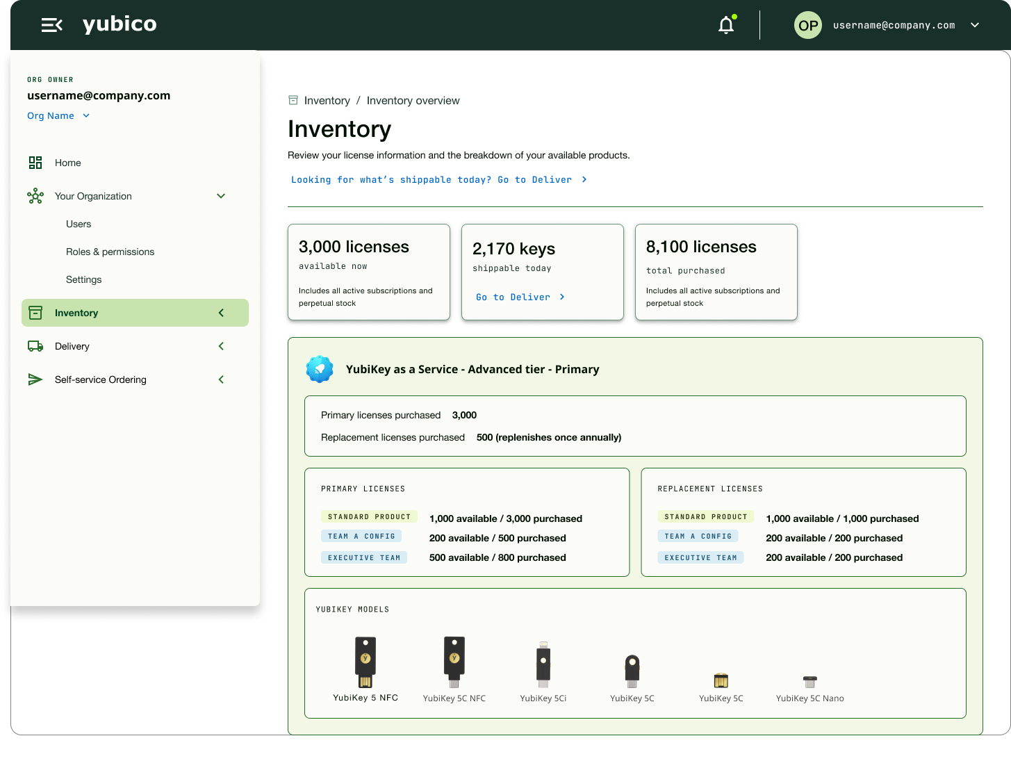 Easily manage all YubiKey inventory across multiple purchase orders and subscription tiers.