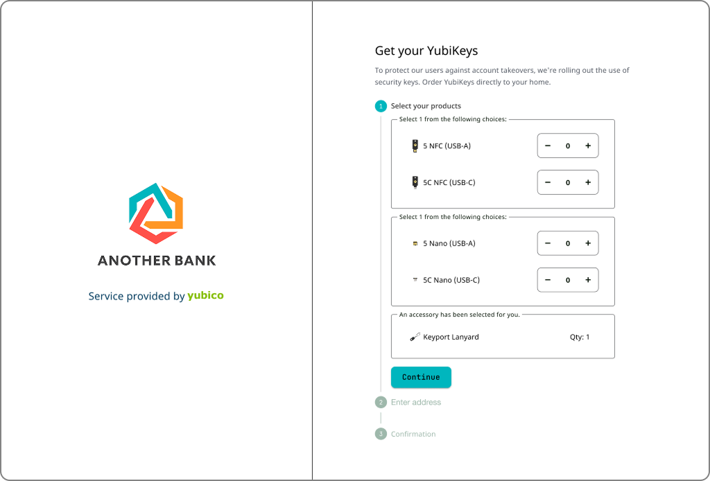 Easily through Self-service Ordering send company-branded invitations for end users to order their own YubiKeys.