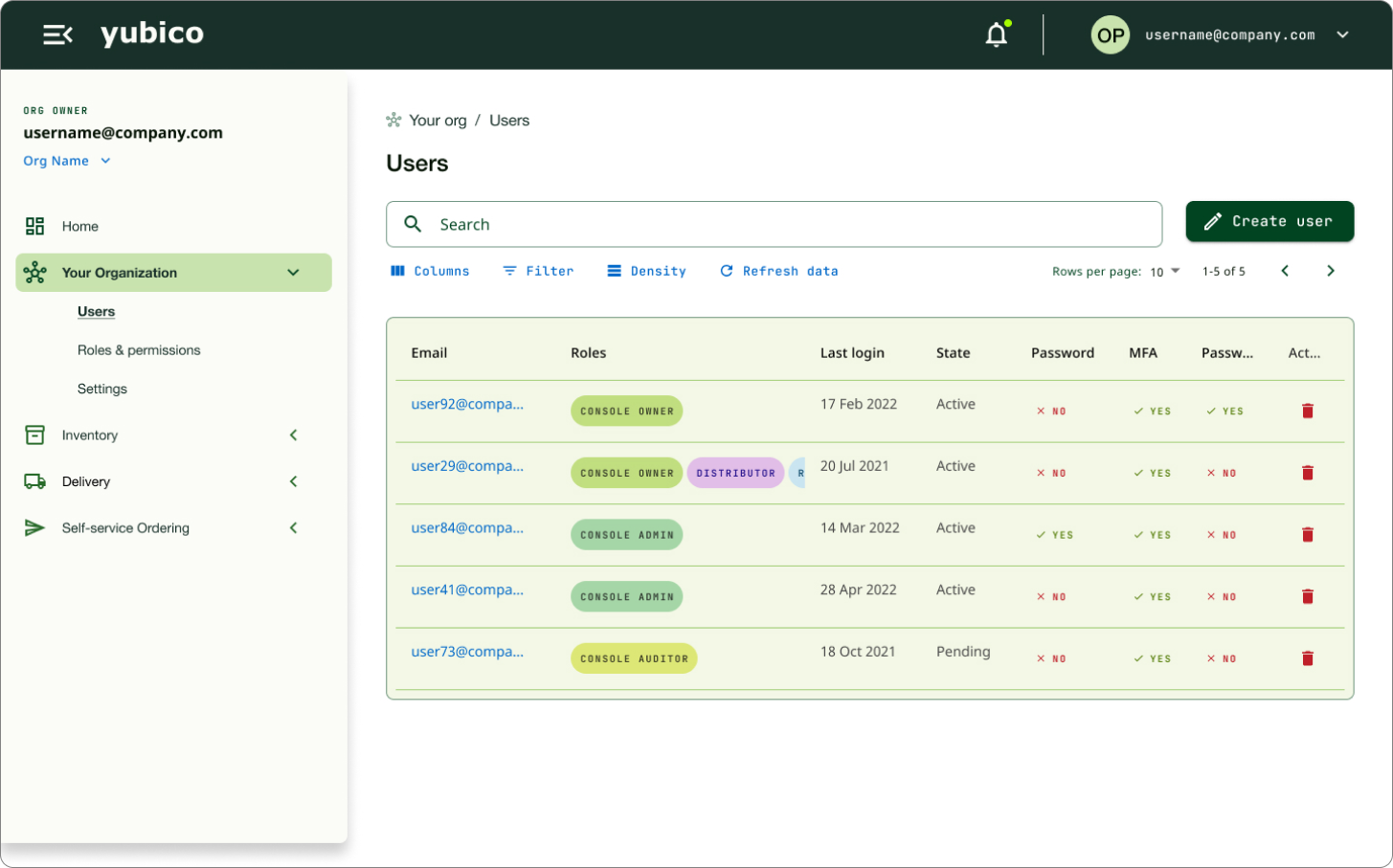 An intuitive, centralized web dashboard to streamline YubiKey deployment and management, giving IT teams instant oversight into inviting users to order keys, inventory, shipments, delivery and much more.