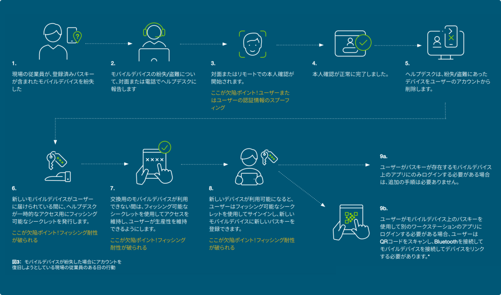 ãã®ããšã念é ã«çœ®ããŠãçŠç¹ã¯é©åãªãªãŒã»ã³ãã£ã±ãŒã¿ã®éžæïŒã¹ãããã»ãã¥ãªãã£ããŒãªã©ïŒããããŠãŒã¶ãŒãæã€ãã¹ ãŠã®èªèšŒãªãã·ã§ã³ïŒããã³ãã¹ããŒïŒãå®å šã«ç»é²ããããŠãŒã¶ãŒäœéšã®ç®æšãšäŒæ¥ã®ã»ãã¥ãªãã£ããŒãºã®äž¡æ¹ã確å®ã« æºããããšã«ç§»ããŸãã ãã¹ã¯ãŒãããSMSãã¯ã³ã¿ã€ã ãã¹ã¯ãŒããã¢ãã€ã«èªèšŒãªã©ã®åŸæ¥ã®ãã£ãã·ã³ã°å¯èœãªMFAãœãªã¥ãŒã·ã§ã³ããç§»è¡ãã ããšã¯ããŠãŒã¶ãŒãè€æ°ã®èªèšŒæ å ±ããã¹ããŒããã¹ããŒãããã€ããæã€äžçãžãšç§»è¡ããããšãæå³ããŸãããã®å€åã« ãããèªèšŒæ å ±ã©ã€ããµã€ã¯ã«ã¯ããŠãŒã¶ãŒãšã®éèŠãªããåãã管çããå¿ èŠãããäŒæ¥ã«ãšã£ãŠæ°ãã転æç¹ãšãªããŸãã