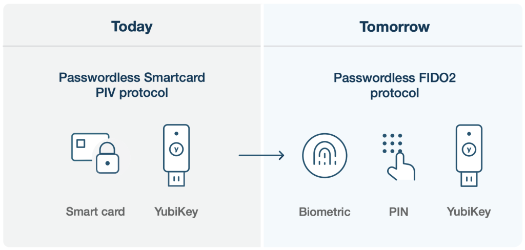 While PIV and CAC offer a passwordless authentication experience, traditional smart cards may be somewhat complex for administrators to implement and manage, and involve having a good strategy in place to implement at scale.