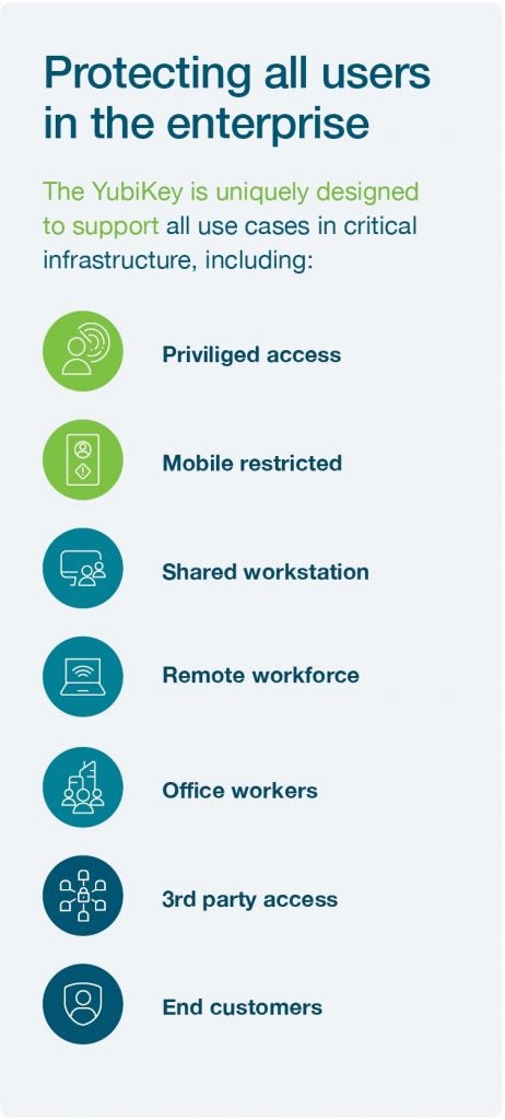 No matter where you are on your MFA journey, we’ll meet you there. You can accelerate your zero trust approach and gain a bridge to a passwordless future. With a tried and true process that many critical infrastructure organizations have followed already—and with a ‘YubiKey as a Service’ model—it’s not a matter of if you’ll be successful but when you’ll be successful in raising your bar for security with modern, hardware-backed passkeys such as the YubiKey.