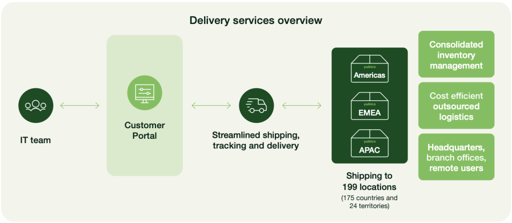 - Cost-effective shipping and tracking of YubiKeys to users across 199 global locations, all handled seamlessly by the experts at Yubico