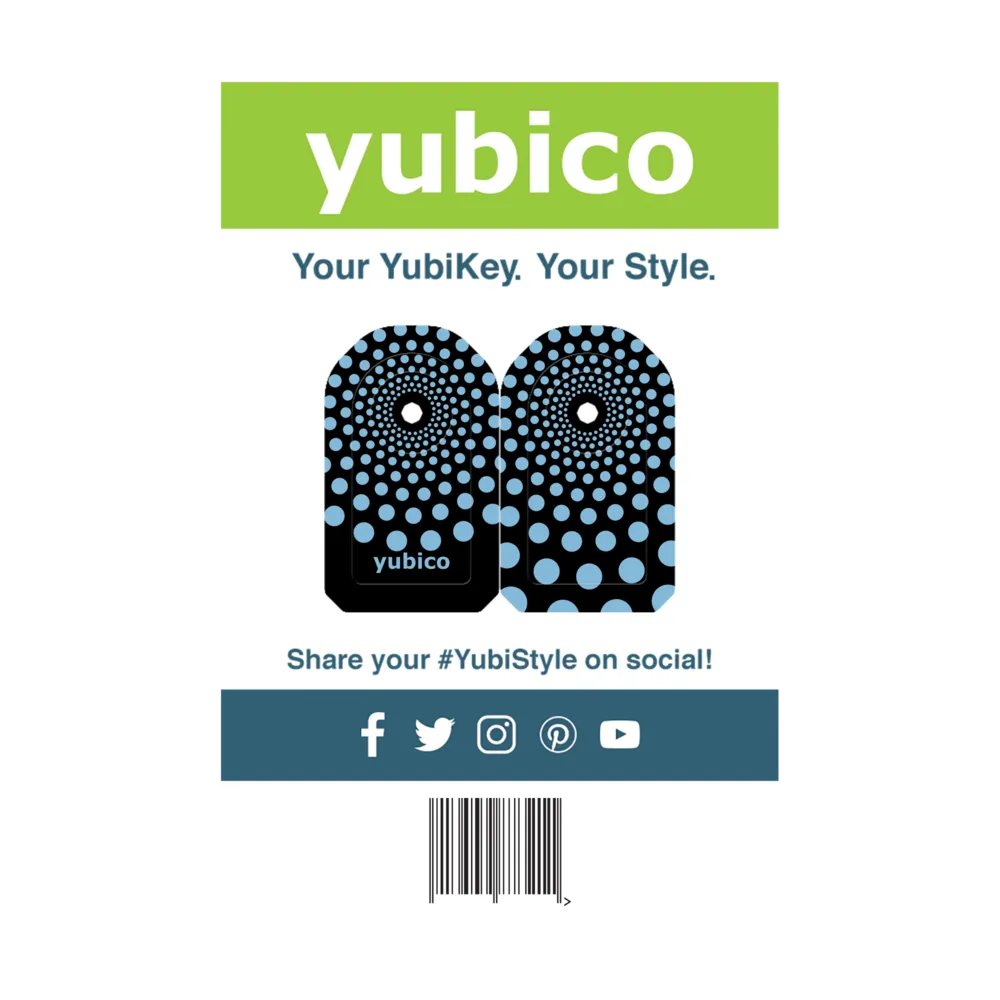 YubiStyle covers are printed on high-quality 3M film and covered with a durable, UV-protective, satin-gloss laminate. Our precision die cut YubiStyle covers are custom made to perfectly fit your YubiKey and style! They will protect your YubiKey against scrapes and scratches.